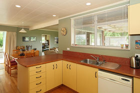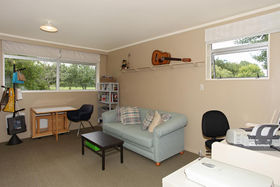 The living areas are separated from this wing by a laundry and utility space which opens out to the service areas, where a large vegetable garden and 4 purpose built dog kennels are found. The large formal lounge embraces the outdoors through sliding doors opening onto an east-facing deck. This room then flows into the dining area and cosy family room with wood burner. A spacious kitchen with plenty of storage and views over the gully backdrop is also incorporated here. Another set of sliding doors opens onto one of the current owner's favourite spots; a westerly deck with views over the gully and as far reaching as Pirongia and the Raglan hills. Here you can watch the sunsets to the sounds of pheasants, pukeko and frogs in the planted gully below. Tucked off the family room is a large additional bedroom with modern ensuite that has its own external entry. This could make an ideal teenager's retreat, bed & breakfast or offer another work from home opportunity.