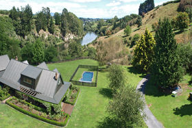 Once upon a time there was a character-packed homestead nestled in its own private valley, with sweeping views down the Waikato River and fabulous gardens plus enough land for some stock. The children of the house went on camping adventures along the river bank, built bonfires and explored the secret waterfall complete with glow-worms. Privacy is assured and the peace and serenity of nature surrounds you. This could be your family's story if you make this lovely five bedroom home set on six acres your own. Down a long driveway off Hooker Road, can you believe you are only minutes from Hamilton city? As soon as you approach the house, the city is indeed long forgotten. Set amongst formal gardens and sprawling lawns, the board and batten house does indeed look like a fairytale cottage. Yet looks are deceiving as indoors the rooms have a great sense of spaciousness and flow to them, and there is plenty of room for everyone. A superbly fitted kitchen comes with storage for the most demanding of chefs plus marble bench top and huge oven. It opens to a dining area with open fire and French doors to the garden. The dining space then flows into the lounge with another cosy fireplace and more French doors to the outdoor BBQ and pool areas. The fabulous master suite was a recent addition and is designed around the river views. Its romantic deck, where the current owners locate their spa pool, would be ideal for a glass of wine as you watch the river meander along below you. Completing the ground floor, a games room could be a huge office or fifth bedroom. Upstairs three bedrooms are all orientated to best capture wonderful vistas, plus here there is a newly appointed bathroom.