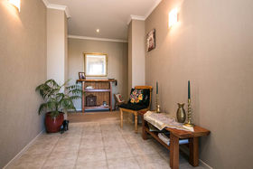 3.2ha well fenced into 10 paddocks with a large pond and native garden area which has been well planted with native trees and shrubs to create your own parklike walking trail experience. The immaculate, modern, dble glazed 4bdrm low maintenance brick and tile home, with ensuite, 2 separate living areas and internal access triple car garaging plus carport, beautifully complements this rural setting.