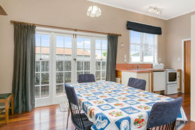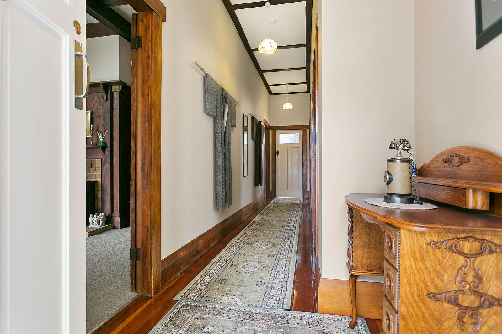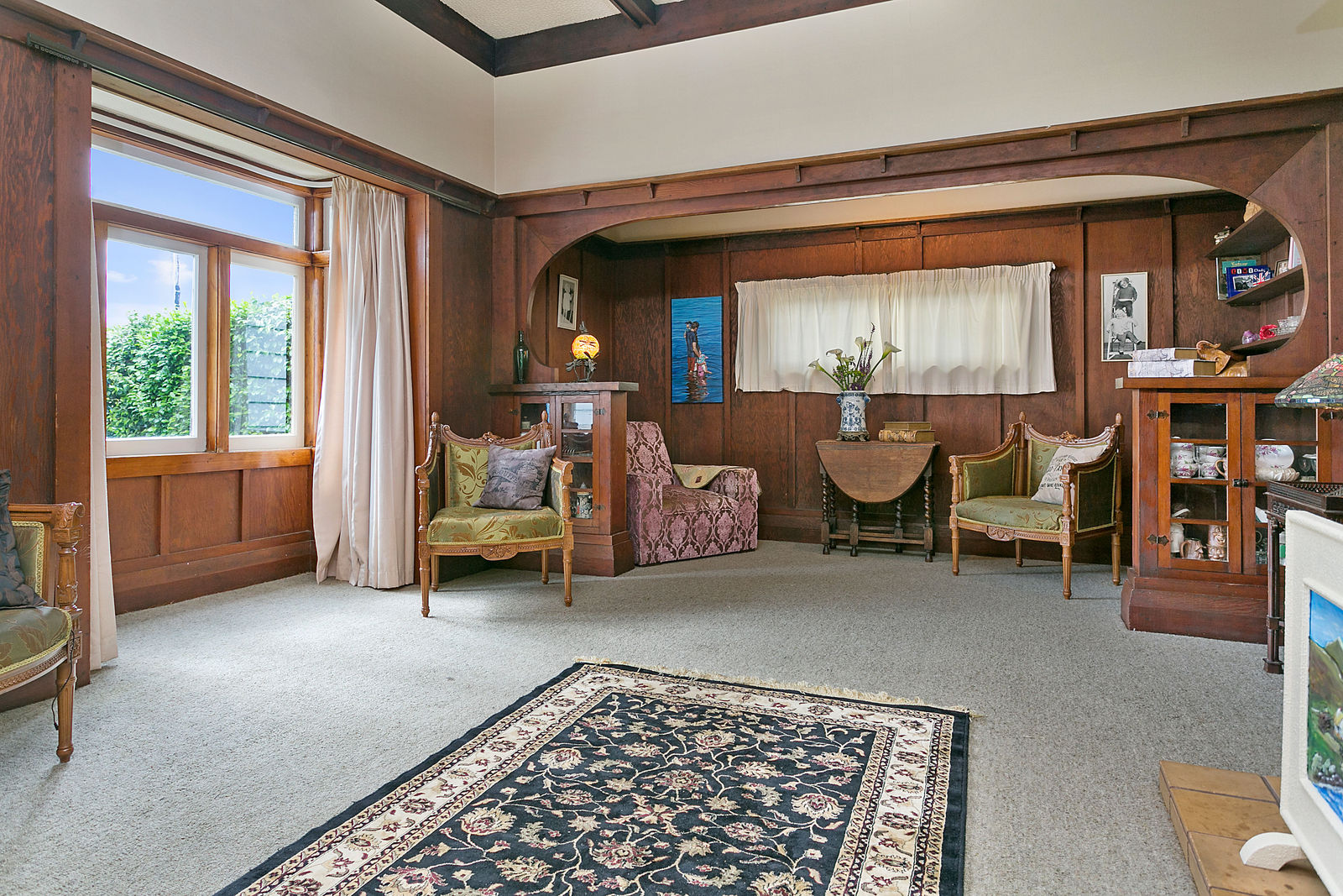 Now rare, an authentic 1920s Veranda Bungalow that has its original charm, high, beamed coffered ceilings, panelled doors, bay windows, and polished wide board hardwood floors. Still featuring a working coal range in the farmhouse kitchen and footed bathtub in the bathroom. This home has the new amenities such as a shower and new toilet and insulation top and bottom, but has not lost the charm of the era. Great outdoor flow with French doors and a private courtyard for breakfast or tea, or lounging. Good sized section and the bonus, a consented sleepout with bathroom and toilet that can accommodate the 'olds', the 'teens' or the guests, or generate income.