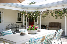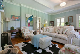 Matai floor boards (some sourced from the old Taumaranui Hospital) have been seamlessly paired by master craftsman with the original native flooring, while high-ceilings and sash windows are complemented by classic Laura Ashley wallpapers and bespoke window treatments.